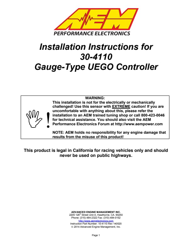 Our World-famous Wideband O2 air/fuel ratio UEGO gauge features a digital LED display and sweeping LED 'needle' that changes colors as AFR changes from rich to lean. A 52mm (2-1/16") gauge housing ensures that it will fit in most gauge pods and can be remotely mounted virtually anywhere. All AEM digital gauges feature a 0-5v analog output for use with data loggers and almost any engine management system. Each gauge comes with black and silver bezels and black and white faceplates for multiple color combinations and a custom look (a black Lambda faceplate and black and white Air/Fuel Ratio faceplates).The UEGO sensor gives the controller its speed and accuracy. The 4.9 LSU sensor used in the 30-4110 AEM Wideband UEGO AFR Controller Gauge has a faster light-off time and draws less current than the 4.2 LSU sensor used with AEM's 30-4100 Wideband UEGO Controller Gauge, which will be superseded to the 30-4110 gauge in August 2014. The 4.9 LSU sensor features the same fuel compatibility as the 4.2 LSU and NEVER requires free-air calibration when used with AEM's 30-4110 Wideband UEGO AFR Gauge. The 30-4110's 4.9 LSU sensor uses a different connector than the connector used with the 4.2 LSU sensors included with the original 30-4100 gauge controller. The sensors are not interchangeable between the two gauge controllers in any way, including changing connectors on the gauges.The Wideband O2 air/fuel ratio UEGO gauge is a must if you want to maximize your engine's power and safety. When tuning an engine, accurate air/fuel ratio data is critical because running with too rich of an AFR can cause a loss of power, and running a lean AFR can result in serious engine damage. AEM's digital Wideband AFR UEGO gauge can quickly alert you to even a .1 change in air/fuel ratio and provide enough time to shut down an engine before damage occurs.