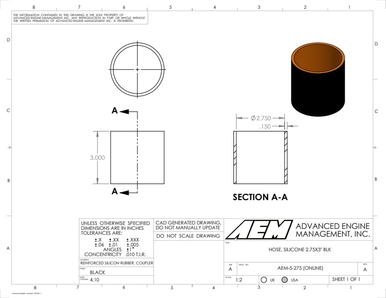 AEM silicone hose couplers are designed to connect air intake tubes for racers, builders and fabricators to create custom ducting for turbocharger systems and air intakes. AEM couplers are constructed from reinforced, multi-ply silicone.