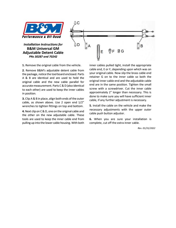 These universal fit adjustable cables will work in 95 percent of all listed transmission applications, yet are less expensive than OE models. Use as straight replacement cable or ease the installation of transmission swaps.