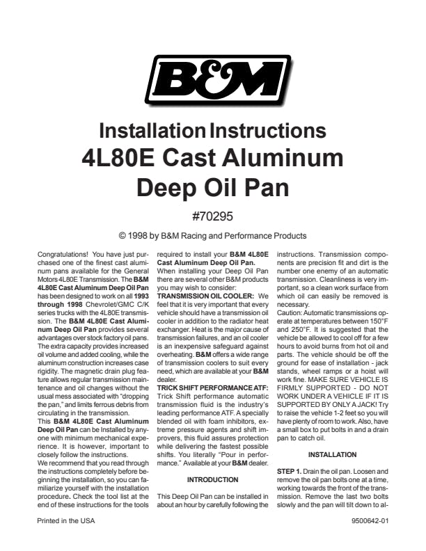 Fits GM 4L80E automatic transmission. Adds 3 quarts of fluid capacity.