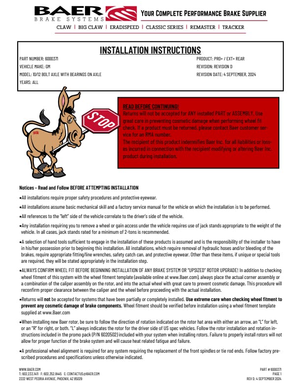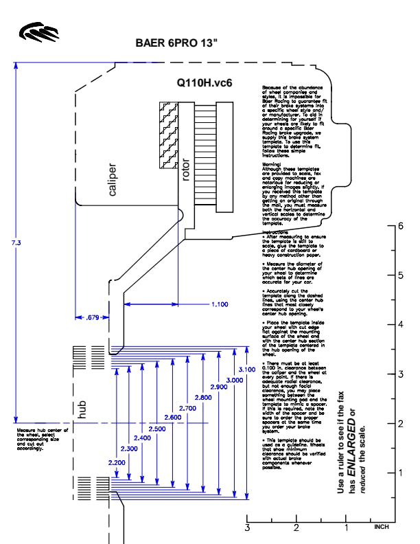 ** Because of the abundance of wheel companies and styles, it is impossible for Baer to guarantee fit of their brake systems into a specific wheel style and/or manufacturer. To verify fitment, we recommend using the template specific to the system you are interested in and compare it to the wheel of choice.**| Attributes | |