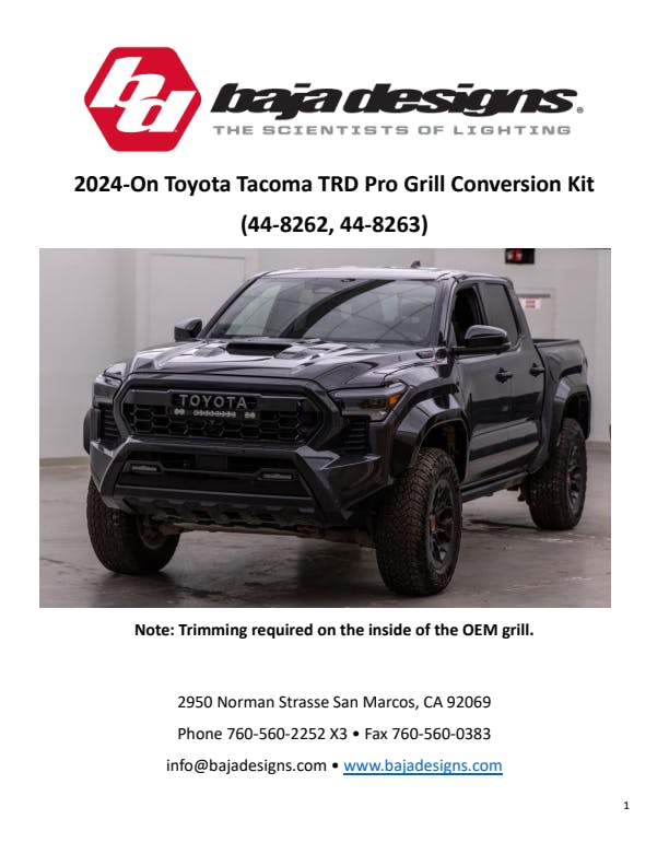 The Baja Designs Grille Conversion Light Kit for the 2024-on Toyota Tacoma offers enthusiasts a powerful lighting solution tailored for off-road adventures. This kit is for those that have done the TRD Pro Grille conversion to their stock Tacoma, and is offered in clear or baja amber allowing enthusiasts to add a light system to the grille. Featuring a 10-inch S8 light bar that delivers 6,324 raw lumens, along with two S2 Pro LED light pods, each producing 2,245 raw lumens. Together, these lights provide excellent illumination across lighting zones 1-4, ensuring optimal visibility in various conditions.