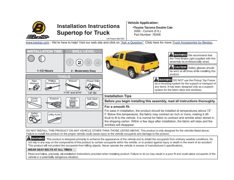 Built with the same core characteristics as Bestop's original version for Jeep, Supertop for Truck provides easy collapsibility and one-of-a-kind styling. Supertop for Truck takes truck bed coverage and storage to a new level by offering a more versatile, adaptable and cost effective alternative to fiberglass bed shells. Made with our proven Black Diamond fabric that has excellent resistance to UV fading or mildewing in wet climates. Window panels zip in, zip out quickly so the top can be folded down like a convertible top providing 100% access to the bed.