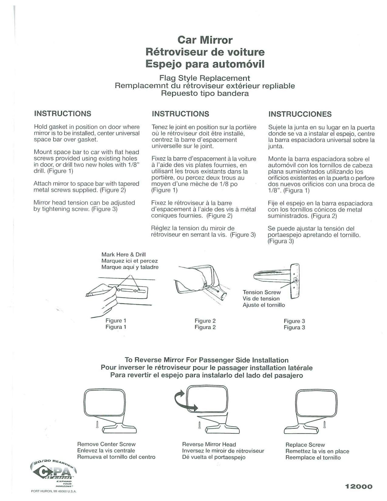 The Flag Style Replacement Car Mirror is sure to be the perfect solution for you! It provides ultimate vision with a 3.5 in. by 5.5 in. mirror face, and features rugged, heavy duty construction. The Flag Style Replacement Car Mirror mounts in the existing holes so no drilling is ever required. The kit features a universal space bar to ensure a perfect fit every time. The universal space bar is 4.5 inches in length, and has 3 slots. The two slots on each end measure in at 1 in., while the middle slot measures 1.375 inches. This universal space bar guarantees a perfect fit on virtually all cars. It also comes with a mounting gasket to protect your paint job from being scratched, gouged, or marred during installation. Once the universal space bar is attached to the car, it is then completely covered by the 4.75 x 1.375 in. base of the mirror. The Flag Style Replacement Car Mirror is universal in both application and position. This mirror will mount on the driver side or passenger side of your car by simply reversing the mirror head. The head attaches to the base using a ball and socket connection allowing free range adjustment of the head. The Flag Style Replacement Car Mirror kit includes 1 black mirror, 1 universal space bar, 1 mounting gasket, 2 flat head screws, 2 tapered screws, and installation instructions.