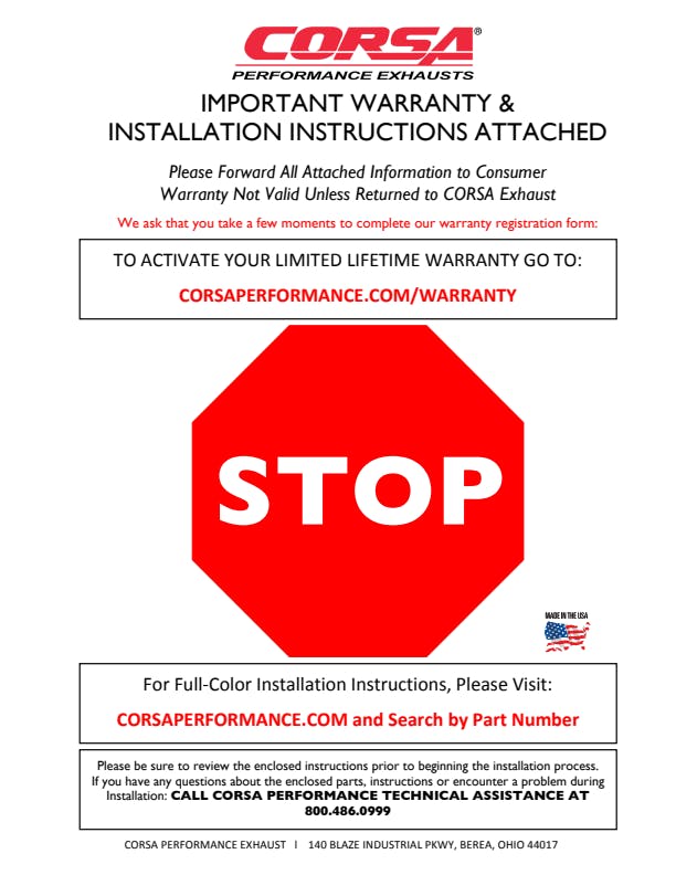 CORSAs Patented Reflective Sound Cancellation(R) (RSC) Technology allows acoustic engineers to create a drone free exhaust sound, styled specifically to fit the personality of your vehicle. Each system is designed to increase vehicle performance, deliver an AGGRESSIVE SOUND under acceleration and a DRONE-FREE EXPERIENCE during cruise. Performance gains are not affected by sound choice.