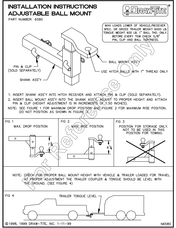 Rated at 6,000 lbs. GTW/600 lbs. TWQuick release pin and clip for maximum adjustabilityBlack powder coat finish over E-Coat