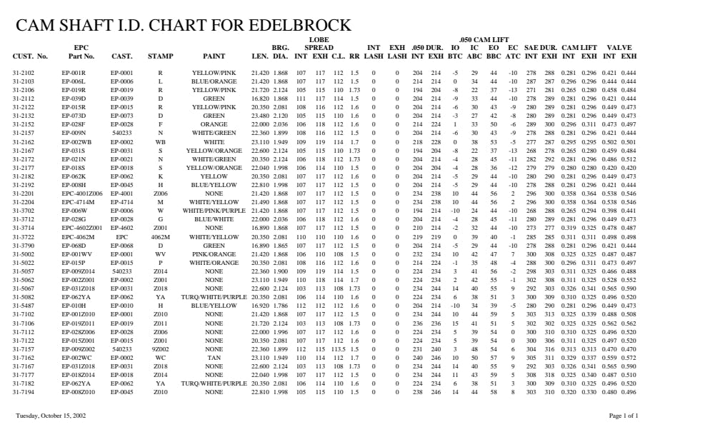Edelbrock Performer-Plus Camshaft #2117 is designed for 283-400 Chevy V8 engines from 1957-86 and produce optimum torque from the low-end to the mid-range. Performer-Plus camshafts should be matched with Performer manifolds for vehicles operating from off-idle to 5500 rpm. The Performer-Plus #2117 is a smooth idling cam for daily drivers, trucks, vans, RVs and 4x4s. You can expect a major improvement in throttle response and torque. In the manifold section you'll find torque graphs showing the power gains from Performer manifolds and Performer-Plus cams. All camshafts include flat tappet lifters (except for cams designed for use with stock roller lifters), assembly lube and instructions. This cam produced 338 HP and 389 Ft Lbs of Torque when paired with Performer EPS intake manifold #2701, E-Street cylinder heads #5089 and E-Street EFI system #3664. Camshaft specifications: - Intake duration: 218 Degrees - Exhaust duration: 224 Degrees - Intake lift: .464" - Exhaust lift: .470" - Lobe separation: 114 Degree - Intake Center Line: 110 Degree - Vacuum: 15"