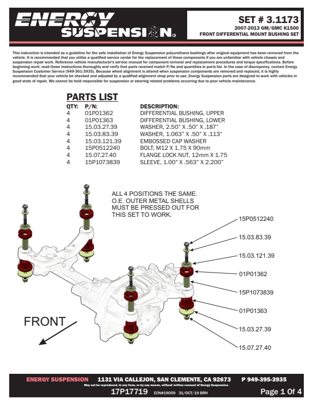 Energy Suspension continues to be the World leader in performance polyurethane suspension technology. Dedication to manufacturing and developing superior products has established Energy Suspension as the most asked-for name in performance polyurethane components today. The complex and diverse nature of Energy's proprietary Hyper-Flex(TM) material requires constant attention to developing the optimum polyurethane formulas. This devotion has produced the quality components that our customers continue to demand. Providing problem-solving solutions with applications for the most popular vehicles, paired with our Limited warranty and superb customer support, Energy Suspension is your first quality choice in performance polyurethane suspension components.