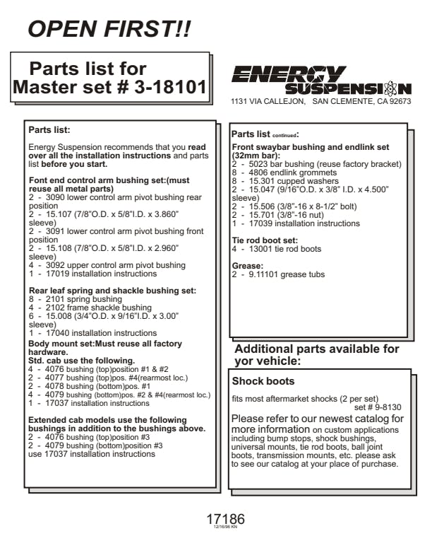 Energy's Hyper-Flex(TM) is superior performance polyurethane which has proven itself under the most demanding conditions on the race track, off-road and street performance driving, Hyper-Flex(TM) components do not wear or deteriorate from exposure to undercar chemicals such as oils and coolants and withstand atmospheric conditions like UV exposure and pollutants. Impervious to these elements, Energy's Hyper-Flex(TM) components are a great value. Not only will it outlast rubber 5 to 1 but are a cost effective performance improvement for your car or truck. Whether domestic or import, front, rear or 4WD, old or new, your vehicle will achieve that level of performance that has made Energy Suspension the most asked-for name in performance polyurethane components. All Hyper-Flex(TM) components are proudly Made in America and are available in red or black.