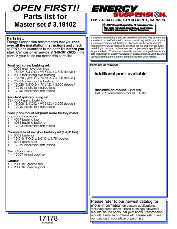 Energy's Hyper-Flex(TM) is superior performance polyurethane which has proven itself under the most demanding conditions on the race track, off-road and street performance driving, Hyper-Flex(TM) components do not wear or deteriorate from exposure to undercar chemicals such as oils and coolants and withstand atmospheric conditions like UV exposure and pollutants. Impervious to these elements, Energy's Hyper-Flex(TM) components are a great value. Not only will it outlast rubber 5 to 1 but are a cost effective performance improvement for your car or truck. Whether domestic or import, front, rear or 4WD, old or new, your vehicle will achieve that level of performance that has made Energy Suspension the most asked-for name in performance polyurethane components. All Hyper-Flex(TM) components are proudly Made in America and are available in red or black.