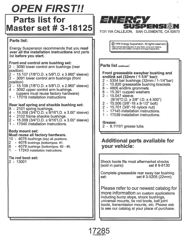 Master Bushing Set |