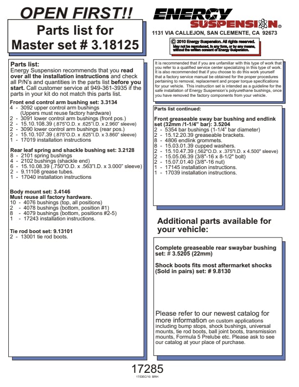 Energy's Hyper-Flex(TM) is superior performance polyurethane which has proven itself under the most demanding conditions on the race track, off-road and street performance driving, Hyper-Flex(TM) components do not wear or deteriorate from exposure to undercar chemicals such as oils and coolants and withstand atmospheric conditions like UV exposure and pollutants. Impervious to these elements, Energy's Hyper-Flex(TM) components are a great value. Not only will it outlast rubber 5 to 1 but are a cost effective performance improvement for your car or truck. Whether domestic or import, front, rear or 4WD, old or new, your vehicle will achieve that level of performance that has made Energy Suspension the most asked-for name in performance polyurethane components. All Hyper-Flex(TM) components are proudly Made in America and are available in red or black.
