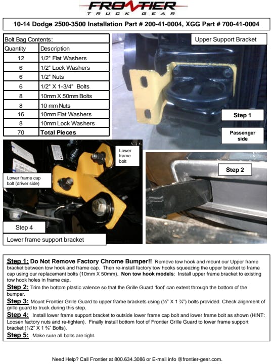 Frontier Truck Gear is the premiere manufacturer of some of the most durable and long lasting Grille Guards on the market today. When you put a Frontier Grille Guard on your truck you can be confident that your vehicle, and more importantly, your family are well protected. This is the best brush guard on the market! It features an original heavy duty one-piece design for only the best in efficiency and strength. The trademark punch-plate grille and full wrap around style has been designed to match the lines of your vehicle. Each custom-made Frontier Truck Gear product is constructed using the best technology and highest quality materials. Our dedication to innovative ensures the sleekest aero-dynamic styling. For added protection and security, we frame mount all our grille guards. Get your Frontier Truck Gear Grille Guard today.