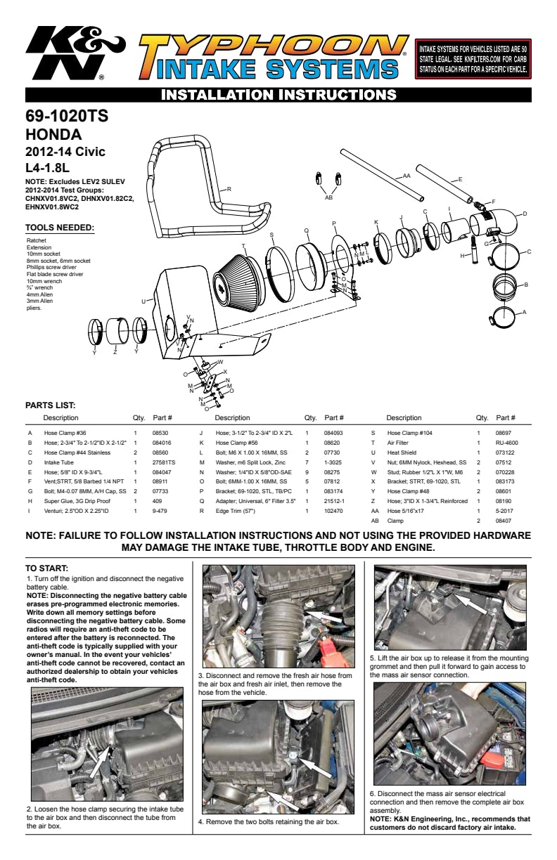 See Application Link Above, Not legal for sale or use in California on any pollution controlled motor vehicle. NOTE: Some specific models and years may be legal in CA. Check the CARB status on your parts at knfilters.com. |