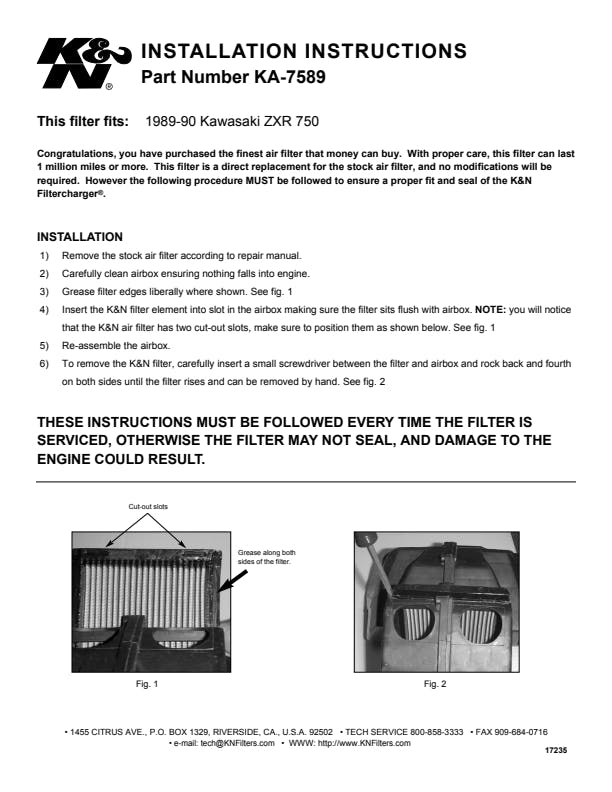 1 Air Filter, 1 K&N 1oz Sealing Grease |