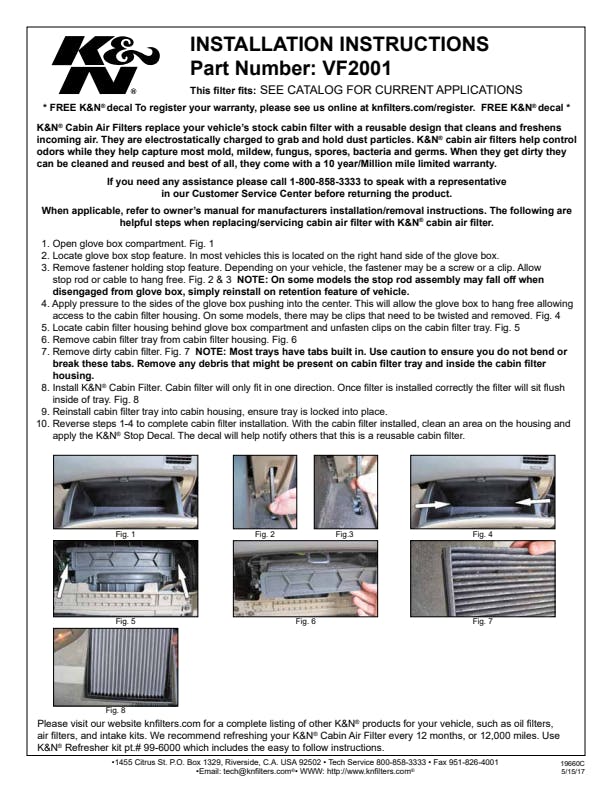 K&N’s line of washable replacement cabin air filters are designed to filter your incoming air using state-of-the-art filtration technology - protecting your vehicle’s occupants, interior, and HVAC system from pollutants and unpleasant odors. Engineered to be washable, reusable, and durable, this cabin filter is designed to last for the entire lifespan of your vehicle!