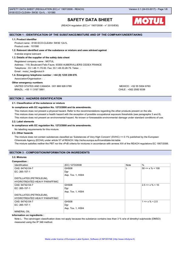 | Additional Info | ACEA Standards: ACEA C1 - JASO DL-1; OEM Approvals: FORD WSS M2C 934 B, STJLR.03.5005; RECOMMENDATION: MAZDA Diesel engines with Diesel Particulate Filter (DPF) |