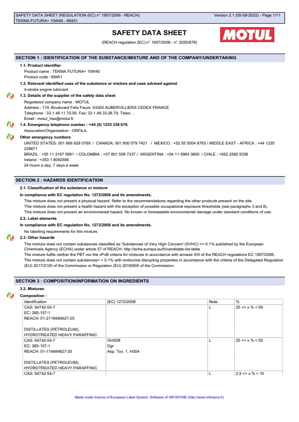 | Approvals | MACK EOS 4.5, RENAULT TRUCKS RVI RLD-3, VOLVO VDS-4.5 |