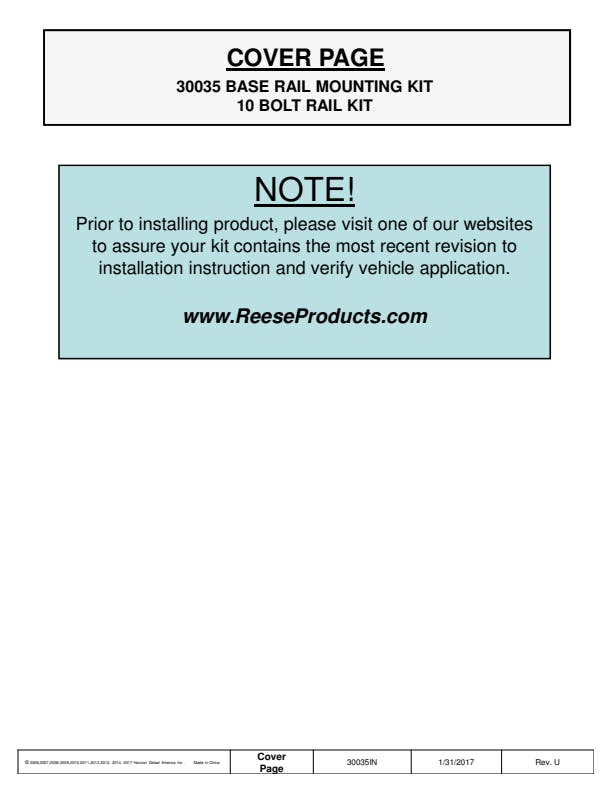Rails and installation kits for full-size trucks. Quick and easy installation with full truck bed access. For use on all fifth wheel hitches except Elite (formerly Signature Series)