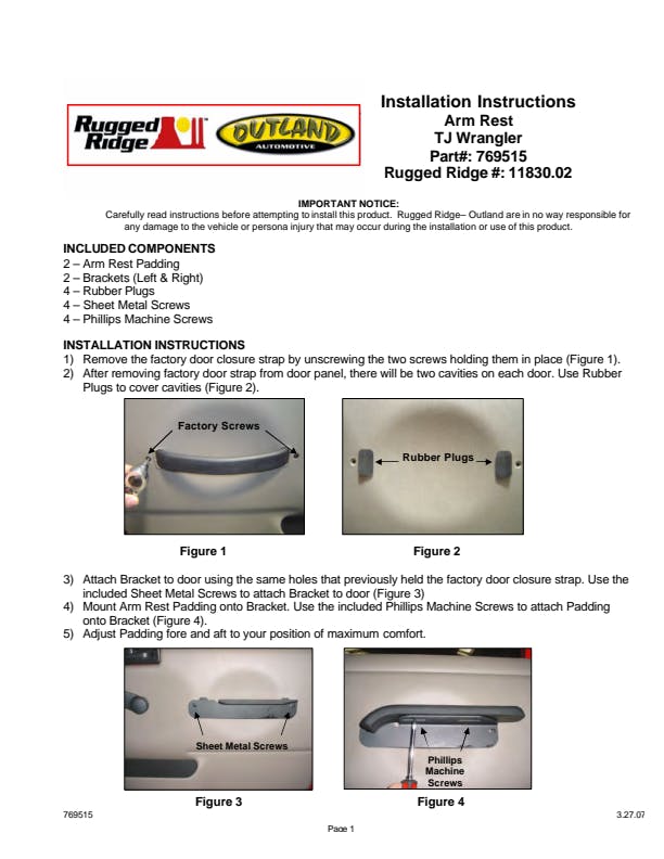 Replace your door pull strap with this easy to use arm rest. Soft padded vinyl design provides comfort while driving. Easy to install-simply remove current pull strap and mount to existing holes. No drilling required. Works on all Wrangler full steel doors.
