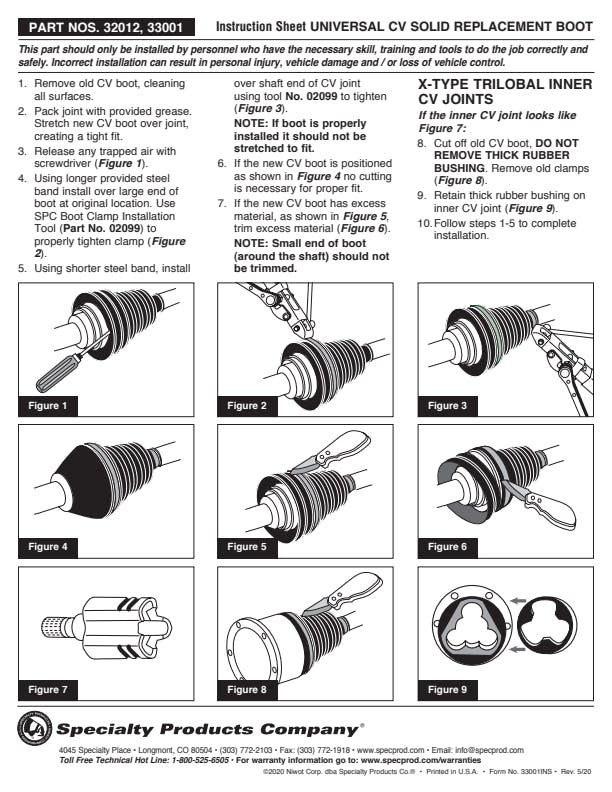 Manufactured of Neoprene, the boots are resistant to oil, grease, water, drying, abrasion, and tearing. They are easy to install and fit most front wheel drive passenger cars and light trucks. Each kit includes boot, OE type grease, universal clamps, and easy installation instructions. One size fits most cars. Rapid Turnover, Reduces Inventory, Simple to Catalog, Easy Ordering, Never Obsolete, Saves Space, Durable, No Part Mix-ups