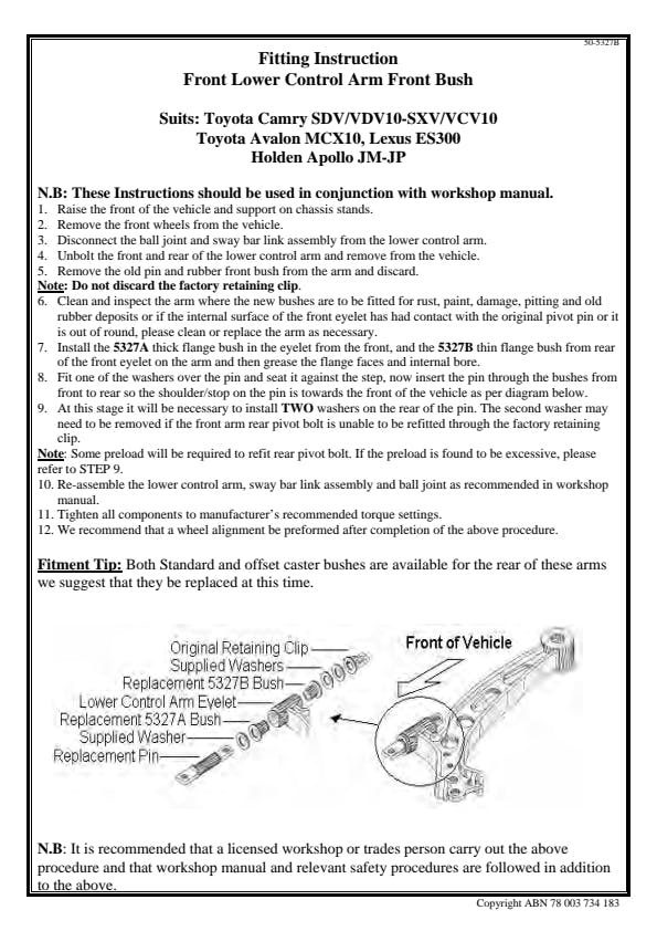 - Install guide included providing detailed instructions on how to install your new Whiteline purchase.